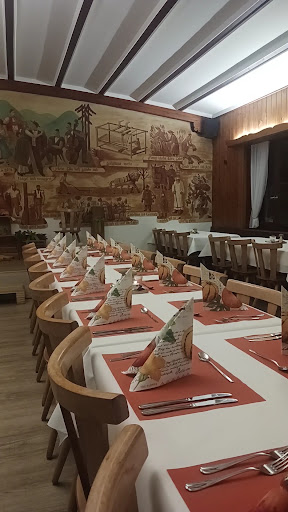 Basic but with rustic charms and reasonably priced. When I arrived there were a few locals hanging out here and there (as if waiting for something), a table of four actively playing traditional Swiss Jass card game with an actual slate for keeping score. Out on the terrace which has a view to the ski lifts in the distance, there were four or five couples enjoying their retired years, ideal for this unhurried restaurant. However when I came to order… I was told the kitchen was overloaded by this small crowd of eight (8) diners, that they were out of what I ordered and any other order would take a considerable time... I am pretty sure he said they are overloaded. I wonder if I offended the gentleman server by ordering tap water on arrival, as he gave me an odd look, and it never came. I was dressed in cycling gear. But this is bike country and another couple came in bike gear too. It could be in the summer months where they like to take it easy and don't like to have to rush. Or something else? I may have done something wrong is my sense... Next time I will book ahead of time. And try my luck again. Basic typical Swiss menu (pork cutlet, Schnitzel, fondue and raclette a-go-go, alpe macaroni, the usual Swiss sausages, and accomnimeny if chips or rösti. Also a range of salads and fitness tellers....) Or you can go in to the big expensive tourist restaurants at Artzmännig and pay ten to twenty francs more per head. A lot of picnicking around here in summer the slides and high ropes at Artzmännig a good attraction for families! Back to the dining room: Has a charming little dining room which looks like it is set up for the local joddling club to come for its annual supper, with traditional mural. You get the idea! Basic ultra Swiss basic country eatery. I didn't try English or French and doubt it's of...