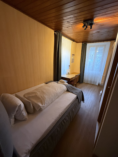 I stayed here for one night in a single room and had dinner at the restaurant - both were fantastic! The hotel is full of charm and history, which I absolutely loved, and my room was perfect. The bed was super comfortable, and the room had everything I needed for a night (or even a few). It was quiet enough, with no noise from other rooms - just a little from the corridor, but nothing at night, so it didn’t bother me. That’s just part of the character of a historic building! Dinner was great - the halloumi burger and fries were amazing. A special mention to the two lovely young ladies who managed both the reception and the restaurant; they were so welcoming and attentive. Overall, a wonderful stay!