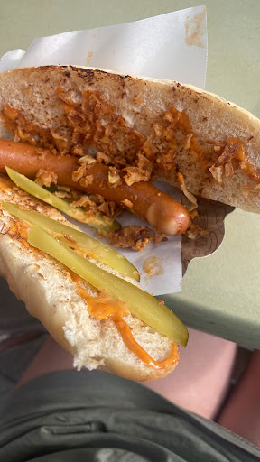 Das Essen am Kiosk ist sehr lecker und günstig. Und im Bereich um den Kiosk darf sogar das Hundi mit (nur natürlich nicht auf die Liegewiesen).