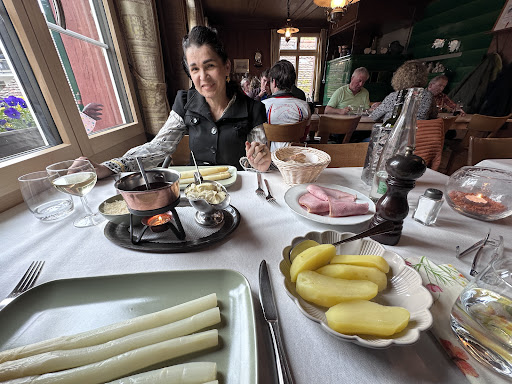 Read moreEinfache, schöne Gartenbeiz unter schattenspendendem Apfelbaum. Sehr gute und aufmerksame Bedienung. Feine, traditionelle Spargeln, toller Spargelsalat. Auch die Schnitzel-Pommes für Nicht-Spargelesser sind gut. Ein Stern Abzug gibt es wegen der langen Wartezeit nach der Essensbestellung, was vor allem mit hungrigen Kindern äusserst mühsam ist. Da wir aber eine Gruppe von ca. 20 Personen waren und à la carte bestellen konnten, ist dies für Erwachsene verständlich. Eine Portion Pommes für die Kinder auf den Tisch, und das Problem könnte zumindest etwas entschärft werden. Schönes und gemütliches Gartenambiente,...