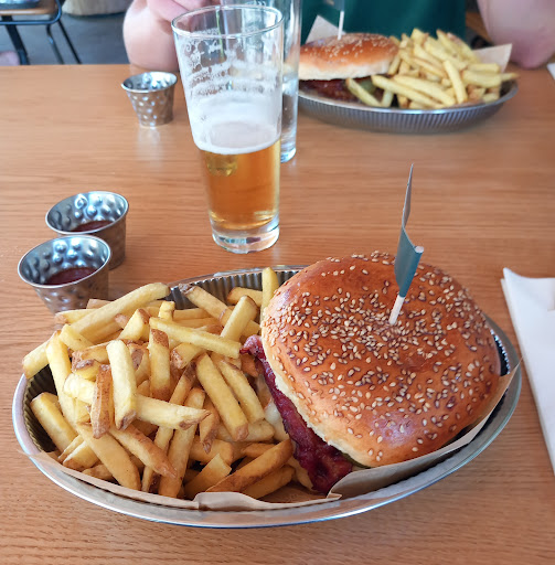 Read moreEigentlich gibts nur Pizza, Burger und Fisch- oder Pouletbrust-Chnusperli (und noch ein paar kleinere und vegetarische Speisen). Das einstige Restaurant ist zur Badi- und Campingbeiz geworden. Finde ich persönlich etwas schade. Das Essen (Cheeseburger, Pommes, Salat) war okey, wie man es erwartet, schmeckte, nicht gerade ein «Signature-Burger», doch besser und schöner als von grossen Fast-Food-Ketten und im Körbchen statt in Kartonboxen. Zum Bestellsystem (ein Servicefachmann machte uns (drei) darauf aufmerksam, dass man via Handy mit QR-Code bestellen solle und er dann alles bringe): Kaum durch die Auswahlmöglichkeiten geklickt und im Warenkorb kostenpflichtig bestellt, standen Getränke - zwei Offenbiere - auf dem Tisch (es hatte allerdings nicht viele Gäste im Gartenrestaurant). Das dritte Bier kam etwas später. Dazu ein Salat. Dann kam die Pizza, dann die zwei Cheeseburger (meiner) und noch ein Salat, und schliesslich der dritte Salat mit der französischen statt italienischen Sauce. Da hat sich wohl niemand Gedanken über die sinnvolle Serviceabfolge gemacht, der Bestelleingang schien einzig massgebend und damit die Geschwindigkeit, mit der Gäste auf dem Handy zu tippen wissen.... Und wenn sich die Gäste nicht auch gegenseitig in die Salatschüssel gucken und die Saucen kontrollieren, gibts...