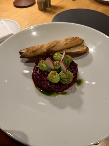 Very average restaurant. To begin with when we came to the restaurant there was no one to guide us to the table (despite of having a reservation). When we were finally guided to our table I felt like an idiot as the waiter was explaining to me not the dishes but obvious parts of the menu like ‘here you can find starters’ or ‘here are the main course’ etc as if I would be illiterate. The tartare was alright. However the fries were very good, super crispy with nice spices. The Caesar salad was very good as well, very crispy and fresh salad with nice pieces of chicken that was very delicate. The burger was very very average and I got a whole bowl of fries that compensated for the burger. When I received my burger I have not received my cutlery which the waiter realised after 15 min when he finally came back to the table. Overall, average restaurant, if you’re really hungry and other options (which there are many) are unavailable or fully booked it’s ok. However we do not recommend you going...