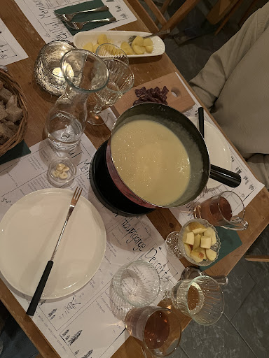Lovely little place with warm, personable service from the owners and cooks - a lady and her mum team. Rustic, cosy wood everywhere, and a really pleasant vibe all round with some quirky little nice details. The fondue was excellent (we had the traditional wine-based cheese), with tasty home-baked bread made that day. The owner spoke pretty good English and had some translations printed to help us. It was not at all cheap - we paid approx. CH 230 for 3 1/2 portions of the set fondue meal with a couple of drinks and some sparking water… but it’s Switzerland, in a ski resort… so 🤷🏻♂️! Not for every day, but a really good option if you’re looking for quality fondue as a special...