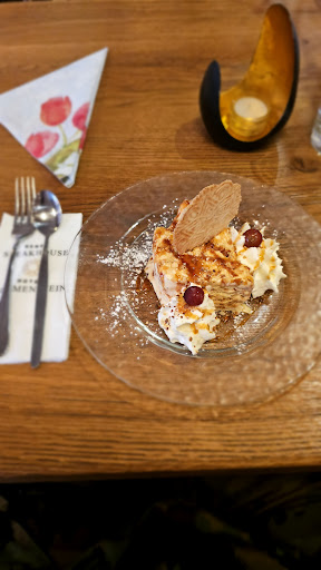 Wir wollten fein Essen gehen in Familie, leider sind wir etwas entäuscht. Das Ampiente noch mit Luftballons dekoriert die reste vom Valentinstag oder man denkt man kommt zu einem Kindergeburtstag. Dann das Personal sehr nett und freundlich aber wenn mir eine nette Dame erzählt was wir als Gruss von der Küche bekommen reicht mir das da muss nicht noch mal die ältere Dame kommen und es noch mal erzählen. Auch wenn man Personal hat die nicht gut deutsch können, haben sie eine netteren eintrug hinterlassen als die ältere Dame. Der Gruss aus der Küche war Truthenröllchen mit einer Barbeque Sauce, sehr lieblos leider angerichtet. Als Vorspeise bestellten wir Knoblauchbrot, das war gut aber wieso ist da Salat darunter was durch das warme Brot nicht wirklich frisch rüber kommt und ich so was auch nicht erwarte. Der Hauptgang alle hatten wir vom Stein Fleisch war gut aber leider hat mich unter der Beilagenschüssel der alte Lappen abgeschrägt. Ich verstehe den sinn komme aus Ihrer Branche aber so was bei diesen Preisen kann man regelmässig erneuern damit es besser aussieht. Wo wir gehen wolten wurden wir auch nett gefragt ob alles ok ist was ja soweit gut war. Nach meiner Antwort wurde hinter mich geschaut und der Teller meiner Begleitperson angeschaut und geäussert; Sind Sie sich da ganz sicher." So eine nachfrage und art und weisse ist unhöflich seinen Gästen gegenüber. Zum wohlfühlen ist es leider nichts, oder um ein gemütlichen Abend zu verbringen. Das Fleisch hatte für uns aber gepasst und das kann...