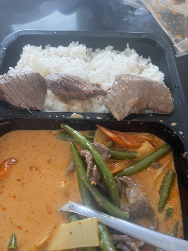 Der gebratene Reis war leider auch keine Sensation. Hier war der unangenehme Fettgeruch noch herauszuspüren und geschmacklich sehr fade. Das grüne Thai Curry hingegen war dafür eine Überraschung. Eine ordentliche Schärfe, ausgewogen mit Gemüse und viel Rindfleisch. Vielleicht wäre ein Fokus auf Curry keine schlechte Idee.
