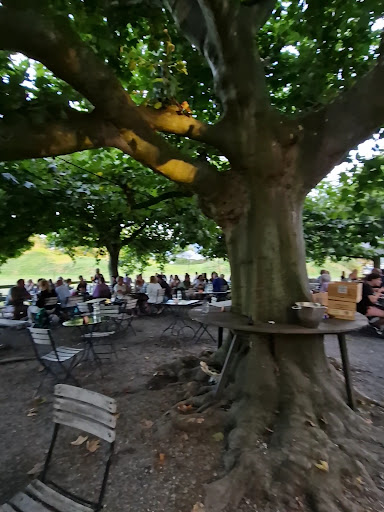 We got treated to this restaurant by a client that was very excited about the place. Thursday evening after a hot summer day at work (no Aircon), we really deserved a good experience (group of 12). The ride to the island was short and sweet. It is beautiful to explore but we were starving. The restaurant served food on the day only outside and rightfully so. The tables are in the shade of a giant fig tree with views of lake, mountain, vineyard and church on the hill. It was picture perfect with cooling evening weather to match. I read map reviews complaining on the service. For us, on this day it was faultless. The huge menus came out with cold water instantly. We ordered few of the recommended starters to share and within 10 minutes these were coming out. Beer and wine kept coming on time. The starters were excellent and between the fried fish, sushi, salads, meat and cheese (yes, plus two pints of beer), I could skip the mains. Still, the schnitzel was hard to pass. Probably the largest I ever had. Not sure how I coped with that (I am shamed to say I cleaned the plate with effort). Overall a fantastic experience. The overall atmosphere is very casual and rustic including the tables, plates etc. Toilet also houses separately from main building (not clean). The prices are on the other hand very "fine dining". I guess if I had to pay instead of the client, i would be less forgiving.