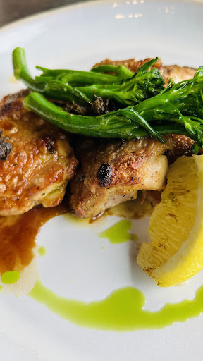 Zum Essen: Sein Gericht war ungeniessbar. Poulet und Brokkoli waren verbrannt. Brokkoli sah aus, als ob sie vom Mittag aufgewärmt wurde. Die Sauce schmeckte auch nach Verbranntem. Risotto hatte kein Geschmack, schwamm im Wasser, war nicht fertiggekocht und kalt. Zudem war es eine lächerlich kleine Portion. Teil von meinem Salatteller las ich lieber liegen. Tomaten waren verdorben und Salat sehr matschig. Die Zanderknusperli, nichts Besonderes. Beide Gerichte waren, für solches Restaurant, absolutes No-Go.