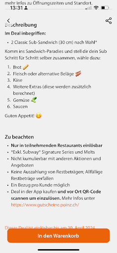 Read moreIch war vor ein paar Tagen bei diesem Subway. Überall Fliegen (im zweistelligen Bereich). Dem Angestellten (Tattoo’s an den Unterärmen) war es ziemlich egal, dass so viele Fliegen rumfliegen und sich an allem vergnügen. Nichtmal die Glasscheiben waren runtergeklappt, um die Fliegen wenigstens physisch von den Zutaten fernzuhalten. Als ich dann eine tote Fliege im Gurkenbehälter gesehen habe, wurde es mir zuviel und entsprechend habe ich den Angestellten gefragt, was das mit all diesen Fliegen soll und dass das nicht normal sei. Seine desinteressierte Antwort: „Ich weiss auch nicht woher diese Fliegen kommen“. Entsprechend hat er es ignoriert und einfach weitergemacht als ob nichts gewesen wäre. Ich kann ja verstehen, dass man bei wärmeren Tagen nicht alle Fliegen fernhalten kann, aber es waren wirklich übertrieben viele Fliegen und für mich ist das ein Indiz von grobfahrlässiger Missachtung der...