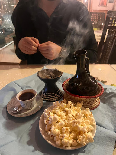 It was our first time in an Ethiopian/Eritrean restaurant (we had this cuisine only at friends place) and it was a positive experience. The staff was very nice and friendly, the place was clean with nice music and cute decoration. We had "menu dégustation" with meat samboussa and some African wine. They even gave us the baclava to go because we were really full. Next time we need to try the tea, as the photos of it seem...