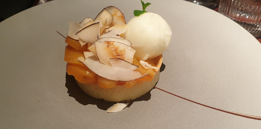 Malheureusement, le service nâĂ©tait pas Ă la hauteur du reste. La serveuse bien que dynamique manquait cruellement de chaleur et de communication. DĂšs lâapĂ©ritif, nous avons prĂ©cisĂ© que nous prendrions le vin pour accompagner le plat, mais elle a tout amenĂ© en mĂȘme temps sans explication ni attention. Aucun effort non plus pour prĂ©senter les plats ou les vins, ni pour proposer un second verre ou un autre choix pendant le repas. Dommage, car avec un service plus attentionnĂ©, lâexpĂ©rience aurait Ă©tĂ©...