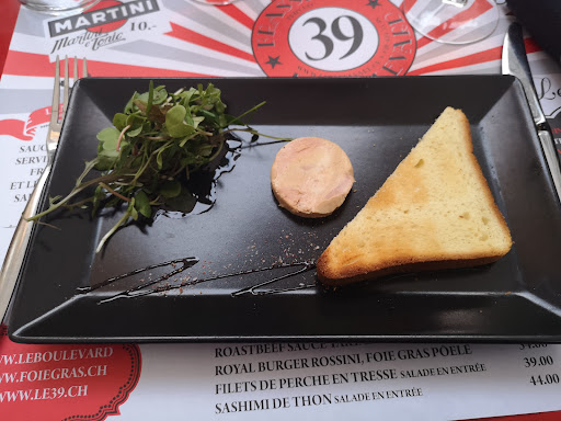 Read moreDéçu ! C'était pour mon anniversaire et je pensais aller à un bon restaurant... On a pris la formule du boulevard à 68 frs. En dégustation avec un petit bout de fois gras qui faisait de la peine au milieu de l'assiette. Ensuite salade avec chèvre chaud. Juste 2 mini tartines de chèvre avec une salade qui n'a rien d'exceptionnelle. Entre temps la serveuse nous a oublié, donc attente de presque une heure (j'ai dû aller la chercher). Ensuite l'entrecôte qui était bonne (sans plus) mais baignait dans la sauce et était déjà pré découpée. Avec ça des frites type Mc Donald's (qui sont meilleurs au Mc do) et un petit ramequin de légumes (rien se spécial non plus niveau saveurs). Vous ajoutez une crème brûlée et un fondant au chocolat avec 2 verres de vin et 2 kirs pour la modique somme de 180 frs! Le service à été médiocre (pas professionnel du tout) donc vraiment déçu pour ce prix! Je ne...