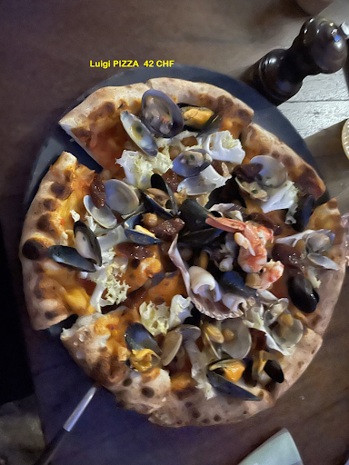 Lors de ma visite, avec des amis, j'ai demandé à un petit serveur avec des tatouages une Pizza Fruit de Mer 🍤, en faisant confiance à la qualité et aux prix que j'ai l'habitude de trouver dans les restaurants italiens à travers la Suisse, l'EU et a l'international. Le serveur m'a assuré qu'ils en avaient, allant même jusqu'à me montrer une image sur son téléphone 📱, ce qui semblait fiable à ce moment-là. Cependant, la pizza qu'il m'a recommandée était en réalité mentionnée dans le menu comme étant à partager, ce qu'il a omis de me préciser.