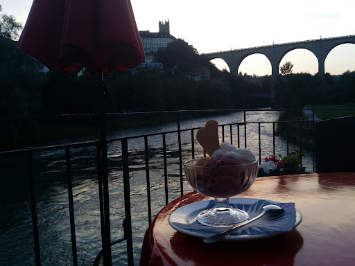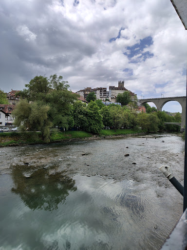 Read moreLa terrasse est étroite, tout en longueur et longe la rivière de la Sarine avec à gauche vue sur le vieux pont en bois de basse ville le pont de Berne. Puis à droite vue sur le Pont de Zaehringen et des rives de la rivière. Bon départ après un verre ou un repas pour plusieurs sentiers pédestres, les rives de la rivière de la sardine ou la vallée du Gottéron avec les gorges de la rivière Gottéron. Serveuse super sympathique avec accueil souriant.