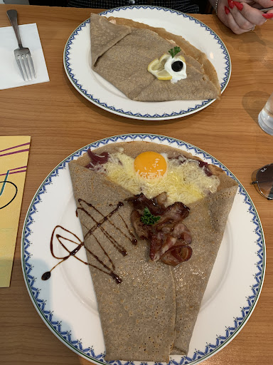 Service - very bad! Long waiting time, no attendance while waitresses simply chatting with each other, top of the top was an answer "I don't know" on a question if there is any crepe with chicken (chicken is listed on the list of meat origin). Food - very few choice, all the menu is simply a variation / different mix of spinach, ham, bacon, mushrooms and egg. Good taste, but not outstanding. Opposite to a very long waiting time to order the food came relatively quick. Atmosphere - moderate.