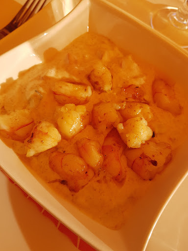 Ich hatte als Hauptspeise Riz Casimir und wurde auch da sehr positiv überrascht (Foto) es wurde in 2 Pfännchen mit einem Stövchen serviert die Sosse war sämig sahnig und aromatisch das Poulet superzart, habe ich sicher nicht das letzte mal gegessen.