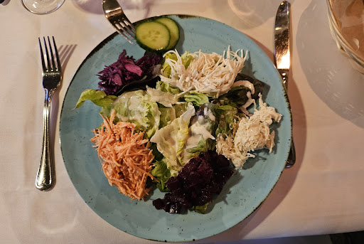 Ich hatte einen gemischten Salat mit französischer Sauce zu meiner grossen Freude bestand dieser aus lauter frischen Sorten (Foto) keine Dosenbohnen und erfreulicherweise auch kein Mais das dazu gereichte Kartoffelbrot mit Nüssen rundete die Vorspeise herrlich ab ... wir haben uns dann noch Naan Brot Nature & Knoblauch bestellt herrlich warm und unfassbar lecker (Foto)