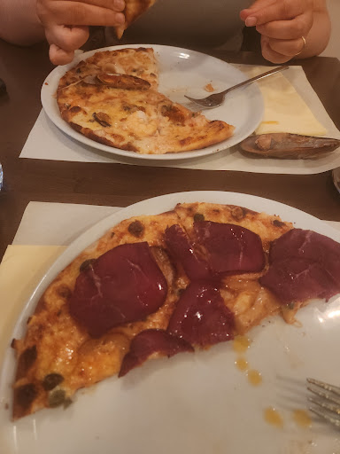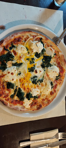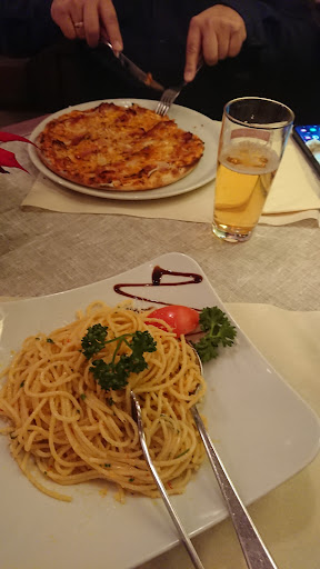 Nach ca. 10 Warten kam dann die Kellnerin, die sich wohl alleine um die Gäste im Restaurant und auf der Dachterrasse zu kümmern hatte. Wortlos überreichte sie uns die Speisenkarten. Nach weiteren gefühlten 15 Minuten erschien sie dann wieder und fragte nach unseren Wünschen. Meine Partnerin bestellte ein sauergespritzten Weiswein und ich mein Bier sowie die Pizza mit einigen Änderungen. Die Getränke kamen, einmal süss gespritzt und das Bier. Die Pizzen kamen auch recht flott. Die Pizza von meiner Partnerin war genau nach ihren Wünschen gebacken, meine Pizza mit Meeresfrüchten soweit auch, jedoch wurden die Muschelschalen und der Krustenpanzer der Garnelen auch mit gebacken. Ansonsten war die Pizza recht schmackhaft. Nachdem meine Partnerin in einer Nachbestellung ihren sauergesprizten Wein bekommen hat, liess ich die Rechnung kommen und bezahlte mit Kreditkarte. Währenddessen kamm.wohl der Chef des ganzen und erkundigte sich bei allen Gästen ob alles in Ordnung war, spendiert dem Nachbartisch (6 Erwachsene, 2 Kinder) den Erwachsenen einen Schnaps, weil wohl bei der Bestellung eine Speise untergegangen war und nachgeliefert werden musste Wir wurden nicht gefragt. Zwei Sterne deshalb, weil die Pizzen schmackhaft waren. Wir haben für uns beschlossen, dort nicht mehr hinzugehen weil wir dort nicht wohl fühlten und auch nicht...