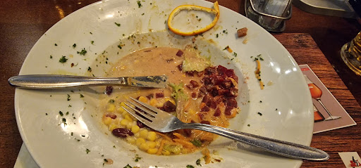 Alter Eintrag Gut bewerte ich das Ambiente und die wirklich gute Bedienung. Auch das Hausbier ist sehr gut.Ich hatte den Salatbouquet mit Rind. Für fast 30 Franken gibt's dafür ein paar Blätter grüner Salat. Drunter versteckt sich nicht deklarierter Randen,Mais,Gurke u Rüblisalat. Ertränkt in Salatsosse. Meins war es nicht wenigstens Brot läge bei den Preis...