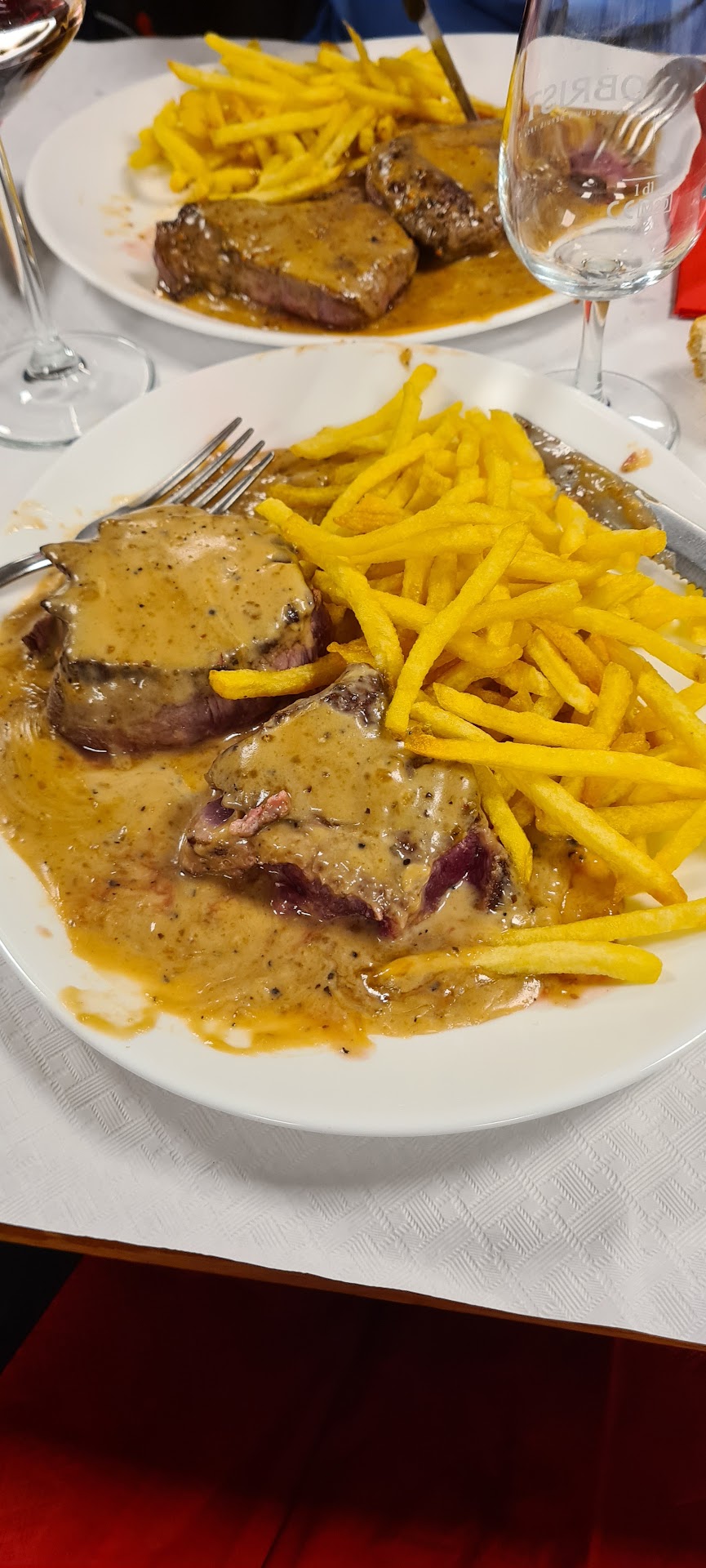We ordered the excellent entrecot du cheval - a horsemeat steak, that turned out to rival most beefsteaks I've tried before. Been looking for horse all around Geneva and found it by accident on the way to the airport! This is the place to go if you've never had horse.
