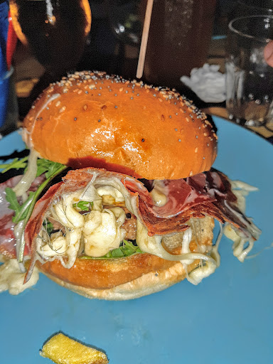 My group of 6 got a bunch of recommendations from people around us and we all ordered burgers and they were all reasonably good. The fries/chips were hot and fresh and delicious. As someone who eats a lot of really great burgers I can say that I very much enjoyed the burger at SPIKISI - freshly made, sturdy-but-overly-large bun, italian style toppings, etc - but just keeping it real it was nothing special. It's a typical weirdly dense European burger, albeit a well executed one. TONS OF POTENTIAL, but not quite there yet.