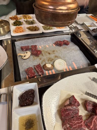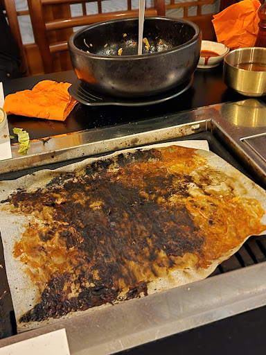 They placed a sad oven sheet paper on top of the grill which sadly prevented any charring or grill flavors to transfer to the proteins. It all stayed on the paper as you can see in the photo. Perhaps they do this to make cleaning easier at the detriment of the grilling experience.