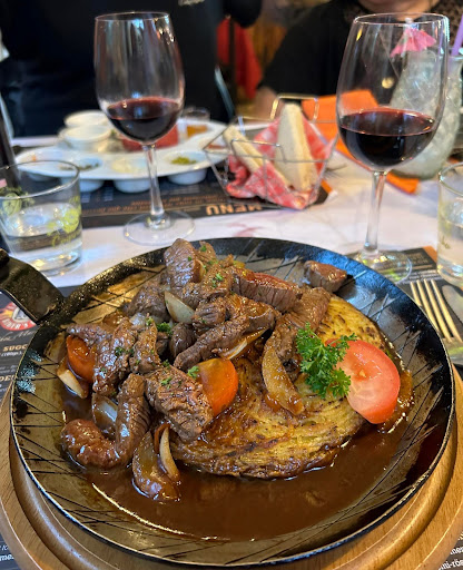 Read moreNous avons découvert le restaurant pour la première fois. Avis très mitigé, il y a eu du bon et du mauvais. Le serveur voulait absolument nous imposer les choix de la nourriture. Nous étions 3 à prendre de la viande. Le pavé sur ardoise était excellent. Rösti bon. Filet sur assiette moins bon ( les nerfs) et la cuisson demandée à point, était saignante. Le gros problème était avec le cordon bleu de poulet. Il était cru à l’intérieur. On a du le retourner. Une des personnes se rendue compte après avoir mangé déjà un bout. Résultat mal de ventre la nuit et ce matin. Ça aurait pu être grave! Après ça le serveur était mal alaise et n’est plus trop passé, il a oublié que c’était un anniversaire et qu’il y avait un gâteau de prévu. Il proposait la carte de dessert, j’ai cru qu’il plaisantait au début mais non il a oublié et a dit ”vous savez il y a du monde ” Personne n’est venu nous proposer ni café ni digestif. Evidemment la facture à la fin était complète sans même s’excuser d’avoir servi du poulet cru. Si on y revient ça sera pour un bon steak sur ardoise . Si...