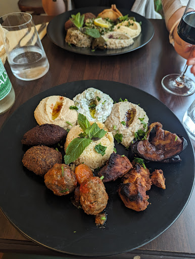 Read moreWe came here on their 18 year anniversary, they gave all customers a glass of prosecco, nice! We ordered the kafta meat balls in tomato sauce, the chicken in lemon sauce as appetizer, if you don't like lamb, the meat balls won't be for you, because it has quite a bit of lamb mixed in here. We also got the traditional plate and vegetarian plate, both quite good. They are vegetarian and glutin-free friendly, not very frequently seen in the Paquis area. The thing they can improve is their wine, we ordered the Gamay and the sauvignon blanc,...