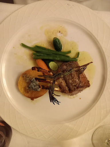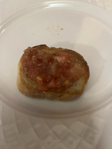Impeccable service, our waiters were very nice, polite and helpful. None of them were Italian which is a bit strange, we thought it was authentic and this to me should ideally include the staff who serves you the meal. The place itself was quite stuffy, we had to choose between two small tables in a corner by the entrance door which was quite uncomfortable. We got offered a mini bruschetta, which is a nice gesture but if you have ever eaten a bruschetta in Italy you will know that it’s something completely different (see picture). We shared a starter which was very disappointing: the burrata with grilled vegetables where vegetables were completely tasteless. I have never been so disappointed with grilled vegetables before. The only nice thing was the burrata. Paying, 32 Swiss francs for that starter is extremely expensive. The Tagliata was good but the side dish consisted in one small potato and salad with two cherry tomatoes (see picture). The ricotta tortelloni were tasty, although the portion was a bit small. We paid 170 Swiss francs for two glasses of wine; one burrata as a starter and two mains. If the portions were all generous and delicious, it would be alright but it wasn’t the case, especially for the burrata starter. Compared to other high quality restaurants in the old town of Geneva we thought that the price versus quantity/quality was unequal. Considering the above mentioned, stick to pasta, because for the rest I unfortunately can’t...