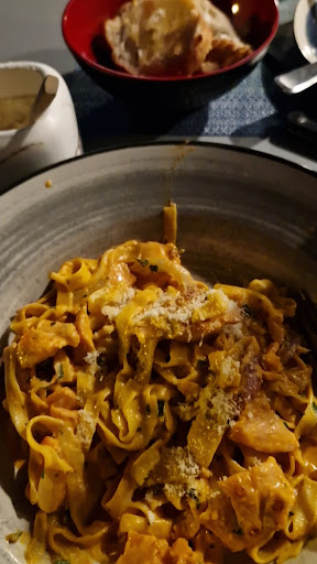 Read moreSoirée organisée avec un grand groupe à la Romama. Soirée sympa mais le service n'était pas de gaieté cœur de la part des employés. Ça se voyait que de devoir servir un grand groupe c'était pas du tout l'idéal pour eux. D'ailleurs à table le service était stressant avec les assiette envoyées à la volée. Les plats étaient bons mais sans âmes car quand il y a des grandes commandes c'est à la chaîne, en cuisine ils ont pas le temps. Ça se ressentait dans l'assiette. Ensuite grosse déception pour tout ceux qui ont pris des raviolis. Dans le plat seulement 5 ravioles par assiette avec deux trois accompagnements qui se battent en duel. Vraiment très très déçus et on se sentait arnaqué car les plats de raviolis sont minimum 35chf. Et surtout en comparant avec les autres plats pizzas pâtes viandes etc on voyait clairement la différence majeur de quantité en plus de la différence de prix. Tout le monde qui regardaient nos assietes étaient choqués du peu dans l'assiette. Nous avions donc encore faim après et nous nous sommes rabbatu avec le pain sur les tables sans goûts. Un grand conseil ne prenez pas les raviolis si vous êtes qqun qui mange des quantités normales! D'habitude les restaurants italiens sont mis en avant pour la générosité des plats mais là pas du tout. Les desserts fait maison minimum 11chf. Bons mais sans plus. Trop cher. Beaucoup de gens n'en ont pas pris à cause du prix. Ensuite Soirée karaoké dans leur salle privée avec un son très mauvais. Volume et micro ne faisaient pas bon ménage. Les employés ont essayé de faire qqch pour améliorer mais sans succès. Pour résumer très bonne soirée pour l'ambiance de notre grand groupe, les plats de raviolis trop chers et pas au top pour le...