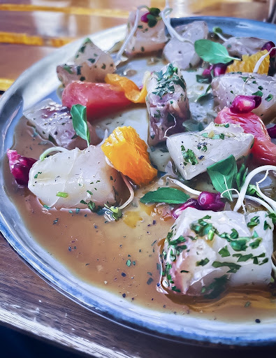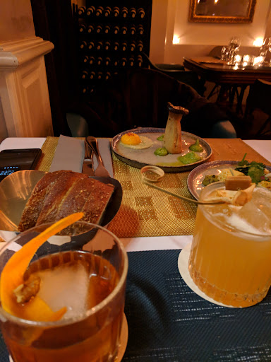 Food: Lackluster and little to no vegetarian options, we shared an appetizer which consisted of sad looking "braised" leeks which was ok but definitely not worth 15chf, presentation was also rather lacking. My partner had the poisson du jour and was also disappointed, no seasoning and presented like you'd expect to see a luxury dog food bowl shown online. Product quality was good but the kitchen could be more inventive. I had a beef picanha which was good but also nothing special, the fat tasted extremely gamey. A table next to us ordered a 170chf beef filet which they did not touch at all, I have no stomach issues at the time of posting this but I think it disappointed them quite a bit. Desert was the best part of dinner but if serving passion fruit you can separate the joining structures to make it look less like frog eggs stuck to a reed. Cocktails were also extremely good but served weirdly, my partner had a drink with almond shavings stuck on the side of the glass, in terms of presentation it looked nice but practically it just made a mess.