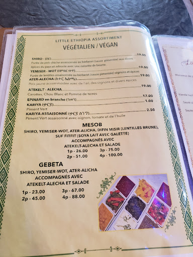 Read moreThis was a great surprise in Geneva, we were looking for something different to eat and this was our first time to try Ethiopian food, everything was delicious, we tried the "buffet" for 2 which was a lot to eat, the flavours and the food were very pleasant, the staff was super friendly, the only suggestion I have is to have a menu in English just in case someone like us come by, but the lady taking the orders and serving food was kind enough to explain about it. The menu has lots of options vegetarian, vegan and non-vegeterian, we tried the buffet for 2 which had one entrée, 4 'curry-like' dishes served in a huge pancake to be used as 'spoon' to eat and a dessert similar to a baklava, all of them were super tasty.