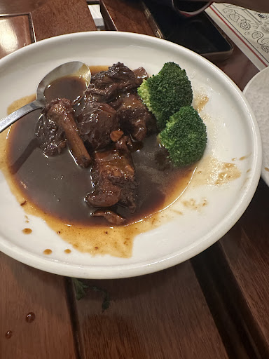 We tried several dishes, including the Crispy Duck, which was absolutely delicious — perfectly cooked, with generous, high-quality pieces of duck and just the right amount of fat. The pork with Chinese black vegetables was also excellent, with a well-balanced sauce that complemented the meat beautifully. We also enjoyed a lightly spicy salad, and beef with chili peppers, which was a bit spicier but incredibly tasty and well-seasoned.