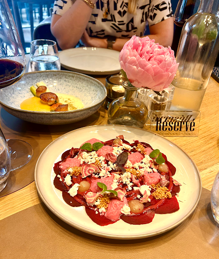 A Geneva Gem! I recently here with two friends after work. We were looking for a central spot that offered great food and wine, and this place did not disappoint! Tucked between two pedestrian streets, it offers outdoor seating and a beautiful, softly lit interior. Cosy and elegant, it’s ideal for dining with friends, colleagues, family, or a date. Upon our arrival, we were warmly greeted by the owner, who escorted us to the chef’s table and offered us an aperitif. The view into the bustling kitchen added an extra layer of excitement to our dining experience. We started with the scallops and beetroot. As someone who has always been on the fence about beetroot, I can now truly say I’m a convert! The dish was not only beautifully presented (see photo), but surprisingly tasty. I opted for the honey-glazed duck (cooked to perfection) and finished with the homemade strawberry and basil sorbet as the perfect palette cleanser to round out a delicious meal. Run don't walk to the Metropole restaurant! (note: not to be confused with the nearby hotel of...