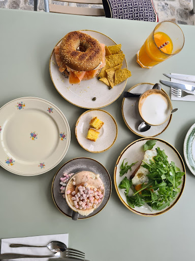 Read moreSehr tolle Lokalität in der Mitte von Näfels. Parkplätze sind in etwa 4 Min Gehdistanz genügend vorhanden. Das Ambiente ist sehr schön, drinnen wie draussen. Das Personal war sehr freundlich und aufmerksam. Wir hatten einen Bagel mit Avocado & Hüttenkäse. Dieser war sehr lecker und können wir definitiv weiterempfehlen. Es hat eine grosse Auswahl an salzigen und süssen Speisen. Die Preise sind für die Grösse der Portionen angemessen. Wir haben uns noch ein Stück Kuchen als Dessert gegönnt, ebenfalls super. Es hat auch eine grosse Auswahl an veganen Speisen. Wir kommen sicher...