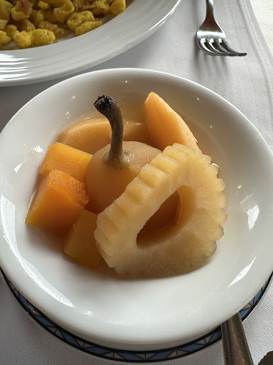 Schade! Da nicht reserviert, leider unverrichteter Dinge wieder weggeschickt worden. Wir wurden nicht einmal zum Kaffee trinken angefragt, obwohl wir so früh (18h) da waren und die meisten Gäste erst ab 19h zum Essen erscheinen. Anscheinend hat man es hier nicht mehr nötig, jeden Gast zuvorkommend zu bedienen. Wirklich sehr schade! Und das meine ich ganz Ernst, da ansonsten die Küche eine gute Bewertung hat. Tja, wir kamen halt auch in Strassenkleidung direkt von der Arbeit und waren nicht gestylt. So gibt es leider nur 1...