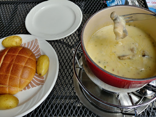Youâd think after two years of pandemic thereâd be some easy system in place to scan folks into the restaurant. Almost impossible to get a table inside between 12:30-13:30, you have to stand and wait where you think someone âmightâ leave soon. After that, you get to go stand in a 25 minutes line up for your self-service food which is not self-served if you want hot, cooked food. Today one person was serving the line up that wrapped around the cash registers and interfered with the scan-in and the main entrance/exit to the place. It was the single most disorganized event Iâve ever witnessed. Ya, it was busy, but ya, they could have done betterâŠfor 6 chicken nuggets and fries 18.50 and a naked bratwurst, 9 fr. I demand better. Pack a lunch, save yourself the trouble.