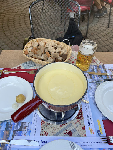Read moreI believe our servers name was Jacqueline, and I must say that she was a very sweet and nice person. Her English was limited, yet she still smiled and did her best to make us feel welcomed and help with questions about the menu. I truly, truly, appreciated this, and it made me feel more at ease and more willing to spend money. My friends and I ordered beers which were great, and then we ordered the fondue, as well as the pork schnitzel. The fondue was amazing! We were afraid we were going to leave Switzerland without a great fondue experience, and just so happened to fall upon this place, which I’m so grateful for. It was the best fondue I’ve ever had, and the sides were great compliments to it. We even decided to dip the schnitzel in it which was so tasty. I would highly recommend this restaurant for the fondue! And if all of the staff are as accommodating and nice as our waitress was, I say give them a try! It’ll be worth it and you’ll have a pleasant lunch/dinner. I’d be willing to go back if I ever return to...