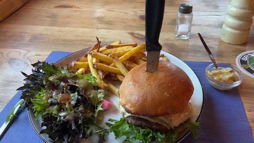 We started with drinks at 6pm on the way home after a nice hike (I enjoyed a nice pint of Brooklyn IPA 😋). Having decided to stay for an early dinner, we shared a really lovely burger and pizza, and were literally blown away by the quality of the food, already planning to return ASAP. Great French food in the Suisse Alps,...