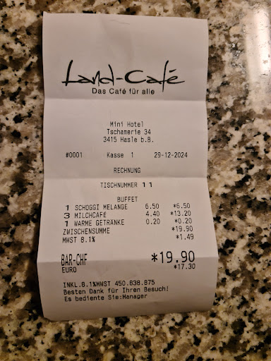 Read moreIrritierende Preispolitik; für 2 Kaffirähmli -.20 zusätzlich verrechnen?! Dann mit der Begründung:"Ein Cafè Doppelcreme kostet ja auch 4.60!" (hatten 2 Milchkaffees) nach der ersten Bestellung wird nicht gefragt ob man zufrieden ist und/oder noch etwas möchte.. Der Witz ist, vor mehreren Wochen waren wir auch da, hatten damals nachgefragt ob man noch evtl. etwas Milch haben könnten (Milchkaffee war für unseren Geschmack zustark), welche uns dann sogar heiss in einem kleinen Kännchen serviert wurde und dies wurde dazumals nichtmal verrechnet. Da gibt man dann schon gerne mehr Trinkgeld. Wir waren schon an so vielen verschiedenen Rest./Cafes aber haben so einen Service + Rechtfertigung noch nie...