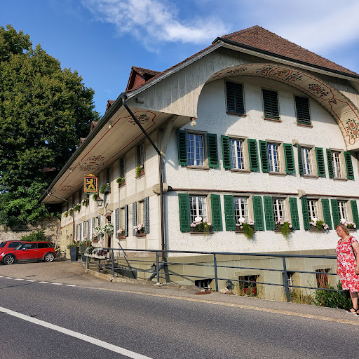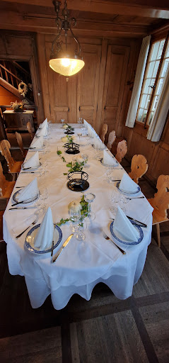 We had a great meal at the atmospheric and charming Landgasthof Löwen. Our goal was to try the Berner Teller, which did not disappoint. Often meat centered dishes like this are too salty, but the seasoning for the Berner Teller at the Landgasthof Löwen was just right. A few pieces of meat were salty, but these meat pieces were cured so the saltiness was expected and intended. The accompanying potatoes and carrots were suitably bland, and we ordered a salad with the dressing on the side so the blander vegetables balanced the saltier meat. We also tried the pike perch (Zander) served with sauerkraut. This fish dish was nice as well. Our favorite part of the meal was dessert. We ordered the meringue (Merängge) with vanilla and strawberry ice cream topped with whipped cream. The meringue was huge and delicious, definitely something for two to share. Our waitress was nice and helpful. She checked on us regularly. We visited on Good Friday so the dining room was festively decorated with rabbits, hatching chicks, and spring flowers. ...