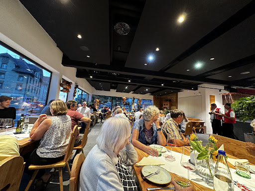 Wir kamen in ein leeres Restaurant und warteten eine Weile, bis eine Bedienung kam. Anschliessend hatten wir ja freie Platzwahl und sassen uns an einen Tisch am Fenster. Die Bedienung entschuldigte sich für die Wartezeit und brachte uns die Karte. Danach kam das Essen wirklich zügig und es schmeckte ausserordentlich gut. Als wir fertig waren, warteten wir wieder relativ lange, bis die leeren Teller abgeräumt wurden. Wieder kam die Bedienung und entschuldigte sich von sich aus für die Wartezeit und erklärte, dass sie mit Gästen auf der Terasse am „schwatzen“ gewesen sei. Anschliessend kam die Rechnung zügig.