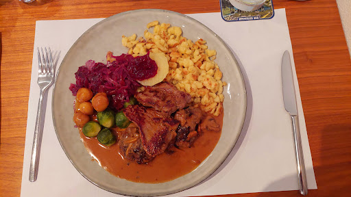 Essen gut, jedoch Bedienung zu lässt zu wünschen Übrig. Hatte mal ein Haar im Essen gefunden, der Teller war halb leer gegessen. Hatte die Servicekraft darauf aufmerksam gemacht, sie hielt mir den Brotkorb hin ich könne die Nudel mit dem Haar da rein schmeissen. Ich dachte mir nur so...WIE BITTTEEE....hab sie dann nur fragend anageschaut, was sie mir anbietet, da ich kein Essen mehr essen kann wenn ich ein Haar drin hatte, gilt auch bei mir Privat zuhause. Sie schaute mich ebenfalls fragend an...ich dann zu ihr...ja und, was bieten sie mir denn an...ich kann das so nicht mehr weiter essen...sie ganz verdutzt....schaut auf meinen Teller...ACH, DER TELLER IST JA HALB LEER GEGESSEN, ICH BRING NOCHMAL NE "HALBE PORTION"...hääää geht's noch hab ich mir gedacht...kein es tut mir leid...ich bring ihnen noch ne ganze Portion...obwohl ne halbe ausreichend war...kein Kaffe oder Dessert als Wiedergutmachung....nichts...hatte danach den Chef kontaktiert....ihm war das sehr unangenehm...(oder wie auch immer wie sich später heraus stellte) er meinte sowas dürfe nicht vorkommen und er sei froh über ein Feedback...was er mir denn anbieten könne...hab dann gesagt einfach nen Kaffe als Gutmachung...eine Woche drauf...wieder im Bären...geh extra noch zum Chef...gib ihm die Hand...sag ihm wer ich bin...ich glaube er hatte keinen Schimmer mehr...als ich wieder sass, hab ich gesehen dass er etwas tuschelte mit der unfreundlichen Servicekraft....Tja...die Moral der Geschichte...auf meinen Kaffe wart ich noch heute...sehr schade fürs Restaurant, da das Essen eigentlich gut wäre...macht es das Personal kaputt...und hab auch schon von anderen Quellen gehört, dass sie da nicht mehr hin gehen wegen...