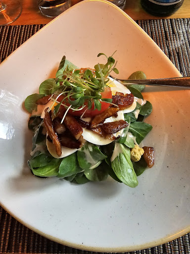 Nach 1 Stunde warten und beobachten wie andere Personen, welche später kamen das Essen früher bekamen, kam der Salat. Schön angerichtet, schmeckt jedoch nicht wirklich nach Salat.