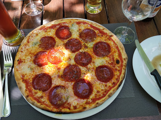 Met friends for lunch here. The terrace is unique, quiet, like a private Garden. Staff very friendly and attentive. Among the mature trees are small colorful umbrellas, just in case itâs a beautiful day, sun is shining and one would like a bit more shade, you stand up and open the umbrella- creative and adds a nice touch! Large menu. The pizzas are delicious, thin crust n crispy, lots of topping. Pasta with truffles is another tasty dish. Weâve been here many times, my 1st reviewâŠweâll be back! Parking in either Coop or Migros...