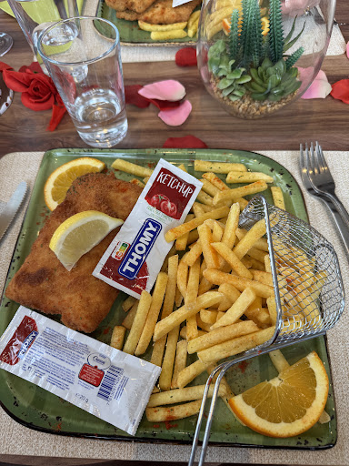 Ich habe letstens bei euch vor dem Haus Essen konsumiert😋. Als Ich auf das Essen wartete konnte ich nochmals meine Lieblings-Filmreihe (Harry Potter😆) anschauen, danke👌. Während dem essen musste ich mit bedenken feststellen, dass sie auch Fliegen mit servieren...😅. Grundsätzlich finde ich es nicht schlecht wenn mehr auf dem Teller landet als versprochen😉, jedoch ist eine fliege eine zusätsliche Zutat, die so nicht in der Speisekarte notiert wurde😲. Grundsätzlich war das essen ( ausgenommen der Fliege🪰) lecker😋.