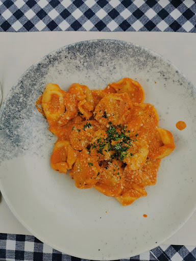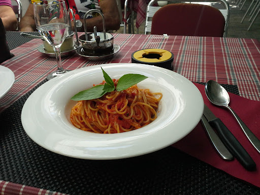 Owner greeted us and shook our hands on our way out. Food is classic Italian. We had spaghetti, pizza napoli and spaghetti carbonara. Portions were big and prices reasonable. Rolls were freshly baked. Service was quick and friendly. Even though a dessert came only with two meals, we all reseved a complimentary dessert (all five of us). We sat outside under trees with plenty of shade despite the 30 degrees celsius. Awesome experience, can only recommend. Inside they have a separate playroom for...