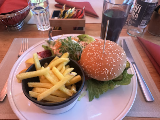 Only thing in common with cafés in Paris and Café de Paris in Interlaken is the cigarette smoke and the obnoxious waiter. That's about it. A lot of smoke. So choose to sit inside. First clue, the ashtrays on the tables outside. Hey, if you still smoke in the XXIst century, time to get the memo! If you promote it, worse! The food. The Greek salad is some concoction with too many ingredients, cubes of cheap feta cheese, all floating in a deluge of balsamic vinegar. Which is Italian... not Greek... And not cheap. Service. First, the greeting was strange, and kind of no time for you. No name, no introduction, some vague non acknowledgement. Interlaken is known for its pristine high quality water, tap of course. So asking for water should return some answer if you prefer the local cru, or a choice of bottled water. No, the answer was that the water is listed in the menu, with a sarcastic look to make you look stupid, while the waiter picks up the menus, meaning, too late sucker. Rude, not necessary. Time to pay. The same waiter dropped the bill on the table and went away. It is common in Europe for the waiter to wait as they are all equipped with portable devices that can process cards and print receipts on the spot. But no, he preferred to go around and disappear. And another waiter would not process the transaction. So after waiting, and being tired of the smoky environment, we had to chase him. Clearly! And guess what, he told that he only had 2 hands. Obnoxious. Location is so so, on a busy street, so expect traffic noise, and its inherent pollution. So thank you faux Café, you deserve the truth. In Interlaken, walk a little, out of the tourist traps and you'll find much better food...