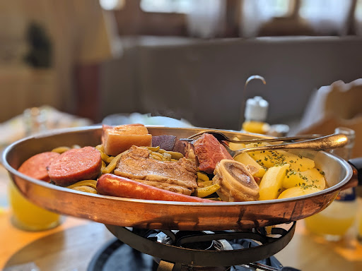 Preis-Leistung in keinem Verhältnis. Grund wie oben beschrieben und zusätzlich: Die servierte "Bündner Gerstensuppe" muss dringend einen neuen Namen haben, denn die Gerste war kaum auffindbar in dieser Portion Cremesuppe. Unter solch typischen Rezepten, sollte man annährend das Bestellte erhalten. Salzkartoffeln zu wenig weich, Fleisch staubtrocken gekocht, Fisch ersäuft unter einem Riesenschwall Sauce und paniertes Ding hat vor Fett getrieft. Salat lag im Wasser, Salatsauce oben drüber, dementsprechend weiter unten im Teller vom Wasser verdünnt.