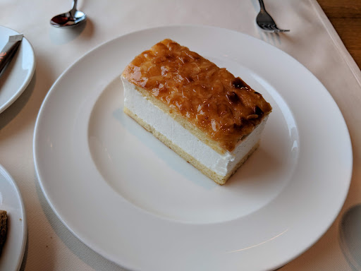 Table service itself was courteous. Our salads were drowned in dressing and not particularly remarkable. Mains were good, my wife enjoyed her salmon very much, my chicken breasts were good but nothing to rave about. Desserts were just ok, on par with the salads.