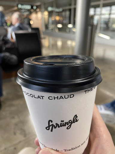 The food is good for a caffee, the chocolate/desserts/sandwiches etc high quality. I also know this is an airport lounge so setting expectations right. The only thing I would try to change is the overall vibe associated with Sprungli. Being about sweets, chocolates etc I don’t understand the stiff attitude concept around the personnel ( they are trained, it’s not a complaint to any of them). They are polite, formal and distant as if they would be working in a pretentious restaurant not in a chocolate brand cafeteria. Relax a bit guys, learn to smile again and synch with the vibe of the persons indulging on chocolate. I know Sprungli wants to be the luxury watch of chocolates, but customers don’t buy your products to show-off, they buy them because they want to have a good time. Also, do something with the coffee. Go for specialty coffee to create memorable moments not just selling expensive, good chocolate with...